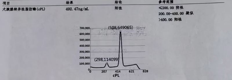 Toradh diagnóiseach: Dearfach do lipáis pancreatach-shonrach canine (cPL)